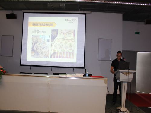 接下来,由依曼琪设计总监秦健先生,为大家进行了名为“美式床品的色彩与时尚”的主题演讲,同时,也对国际家纺界的时尚流行趋势和色彩运用方面做了讲解,让大家受益匪浅。